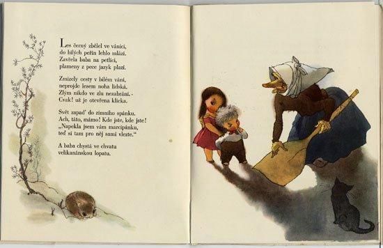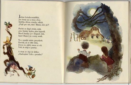 ヴァーツラフ・レンチの「お菓子の家」にイジー・トゥルンカがイラストを担当した絵本です。このお話ではいくつものバージョンが出版されていますが、こちらは1944年に発行された初版です。トゥルンカが何度も描いているお菓子の家の源流がここにあります。美しい印刷とともにお楽しみください。全38ページで本編が収録されている見開き全てにイラストがあります。