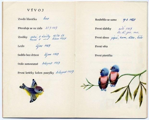 イジー・トゥルンカのような巨匠になると仕事の幅は様々で、今となっては全仕事をチェックするだけでも大変なわけです。リストに残っていない作品や出版物、印刷物なども色々ありまして、こちらもそんな希少な一冊です。子供が生まれてから成長記録を記すための冊子です。以前にマルツェル・ステツケルの同様の商品を紹介しましたが、こちらはトゥルンカのイラストによるもの。通常販売されていたものではないので市場にはほとんど出てきません。