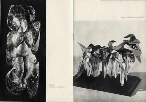 1972年にチェコのイフラヴァで行われたイジー・トゥルンカの展覧会のために製作されたリーフレットです。4点の線画イラストと油絵が1点、立体作品が3点掲載されています。いずれもモノクロ。全12ページのリーフレットと展覧会で用意された作品が書かれたリストが一枚付属します。経年の傷みは多少あるものの状態良好です。