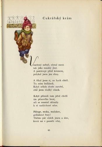 ヤロスラフ・サイフェルトの詩集、「マミンカ」にトゥルンカがイラストを担当した絵本。サイフェルトは1984年にノーベル文学賞を受賞している国民的な詩人です。日本語にも翻訳され出版されています。1965年の3版、全80ページにイラストは26点。背表紙上下に少し傷み。その他経年の傷みはありますが比較的状態良好です。