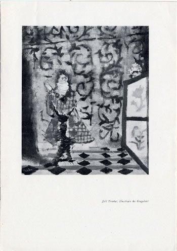 1945年にプラハのホジェイシュギャラリーにて行われたイジー・トゥルンカの展覧会用に製作されたリーフレットです。全16ページにイラストは4点と少ないですが、非常に希少で資料性の高い一点です。1945年当時のものということもあり、少し日焼けて茶色くなった表紙も味わい深さがあります。酷い破れ、落書き等はありません。