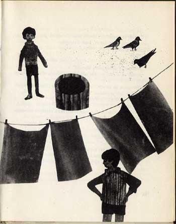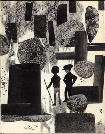 ロシアで発行されたお話のチェコ語翻訳版。イラスト、グラフィックデザインなど全てを担当するのはイトカ・コリーンスカー。ページ一面を使ったアートワークが10点。全てモノクロのコラージュによるもの。コリーンスカーの寂しげな雰囲気の漂うアートワークが絶妙です。経年によるイタミはありますが比較的状態良好です。