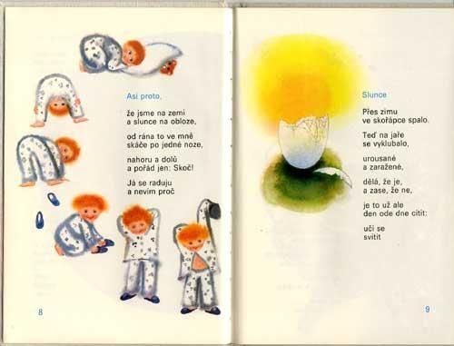ミレナ・ルケショヴァーの詩にイトカ・ワルテロヴァーがイラストを担当しています。ワルテロヴァーにしては、イラストのぼんやりしたタッチは少し控えめ。全80ページ、全てのページに動物や子供などの 美しいイラストが描かれていています。