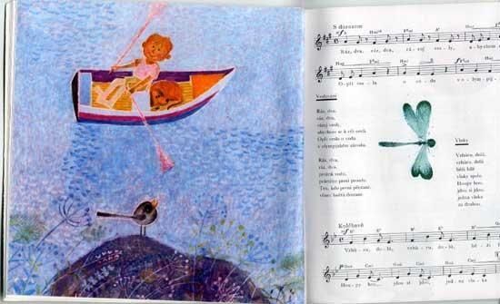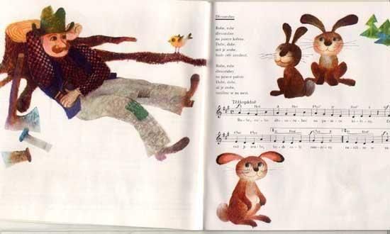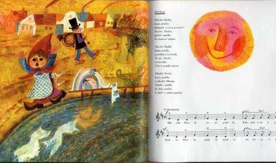 ヨゼフ・パレチェクがイラストを担当する、子供のための楽譜集とレコードのセット。ソフトカバーで巻きつけのケースに、7インチレコード4枚。楽譜とイラストの絵本冊子、体操用の楽譜の3種が付属します。絵本冊子は全62ページ、ほぼ全てのページにイラストがあります。ページ一面を使ったイラストが12点。どれもパレチェクらしい温かみのある可愛らしいイラストで、コレクターなら抑えておきたい一冊です。レコードは82年、絵本は85年の発行です。
