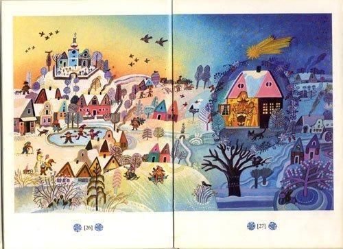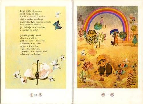 チェコを代表する詩人、ヤロスラフ・サイフェルトの詩にヨゼフ・パレチェクがイラストを担当した絵本。全30ページ。全ての見開きにイラストがあります。86年の作品で少し光沢のあるマットな紙に印刷が施されています。見開きに渡って描かれたイラストも多く、パレチェク独特の鮮やかな色彩による世界が目の前に大きく広がります。状態良好です。