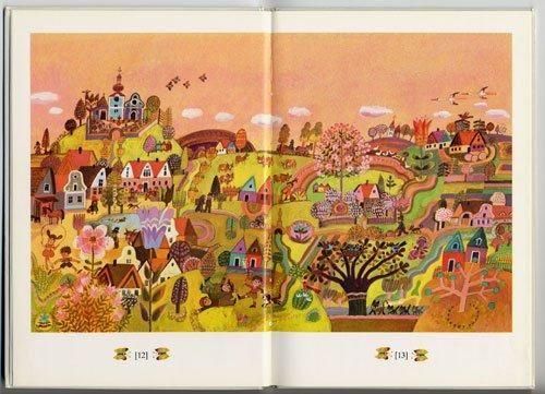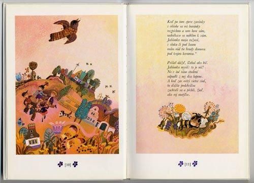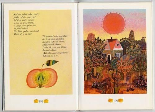 チェコを代表する詩人、ヤロスラフ・サイフェルトの詩にヨゼフ・パレチェクがイラストを担当した絵本。全30ページ。全ての見開きにイラストがあります。86年にチェコで発行された絵本のスロヴァキア語翻訳版。少し光沢のあるマットな紙に印刷が施されています。見開きに渡って描かれたイラストも多く、パレチェク独特の鮮やかな色彩による世界が目の前に大きく広がります。状態は比較的良好です。