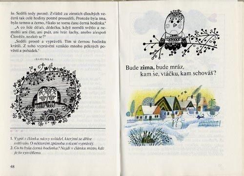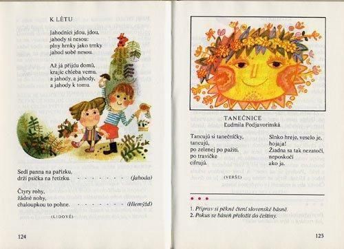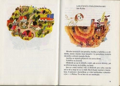 ヨゼフ・パレチェクがイラストを手掛ける、チェコの国語の教科書です。チェコの作家や詩人の作品に色鮮やかで優しいタッチのイラストが添えられています。以前1978年の初版を紹介しましたがこちらは1986年版。構成は同じで、かわいらしいイラストがたっぷり詰まったとっておきの一冊に仕上がっています。パレチェクさんの他の絵本ではあまり見ないイラストも多数含まれているので、ファンの方は必見です。全225ページに80点ほどのイラスト。経年の傷みは多少あるものの比較的状態良好です。