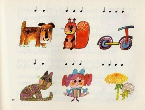 小さな子供のためのピアノの教則本、楽譜集です。イラストを担当するのは表紙のイラストを見れば一目瞭然、ヨゼフ・パレチェクです。4歳から7歳ぐらいの子供をターゲットにした楽譜集で、退屈しないように、かどうかはわかりませんが、とにかくイラストが多いです。ほぼ全ての見開きに描かれています。まるでヨゼフ・パレチェクのイラスト集さながら。長く同じデザインで愛され続けている一冊です。こちらは1989年の3版。全215ページ。表紙に少し擦れなどによる傷みがありますが比較的状態良好です。この本は割れや破れ、コーティングの剥離など傷みのあるものが多いのですがこちらはその中ではかなり状態が良い方だと思います。