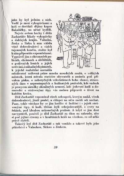 ヴァーツラフ・ジェザーチュのお話にヨゼフ・チャペックがイラストを担当した本です。全115ページにモノクロのカットが30点。扉にはジェザーチュのサインが書かれています。
