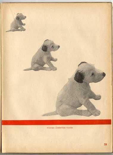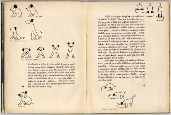 説明が不要なほど有名な本「ダーシェンカ」です。チャペックの愛犬ダーシェンカの成長記録が、愛らしい写真、イラストとともに紹介されています。1946年のカレル・タイゲ装丁