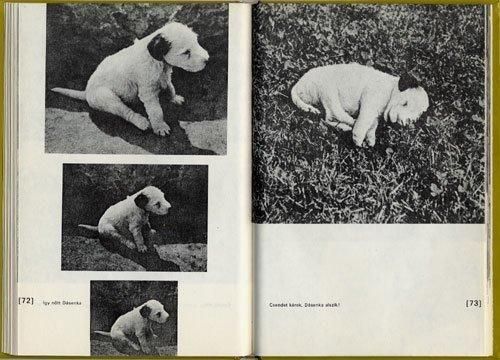 説明が不要なほど有名な本「ダーシェンカ」のハンガリー語翻訳版です。チャペックの愛犬ダーシェンカの成長記録が、愛らしい写真、イラストとともに紹介されています。1970年の版をベースにして製作されています。シンプルな装丁が美しい作品です。全100ページ、ほとんどのページにイラスト有。70ページ以降は写真による構成です。背面の見返しに「22」という書き込み。その他経年の傷みや汚れはあるものの状態良好です。