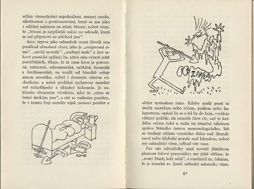 表紙を見ただけでピンとくる人も多いカレル・チャペックの「園芸家12ヶ月」のチェコ語版です。以前69年版を紹介しましたが、こちらの表紙カバーのデザインも秀逸。ズデネック・サイドゥルが担当しています。モノクロのイラストが60点以上収録。飾っておくだけでも絵になりますね。