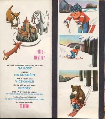 カレル・フランタのレアな一冊。長細いこちらの絵本はフランタのコミカルなイラストが満載で、写真もあり、タイポグラフィにもこだわった一冊です。「人間さま、しかめっつらなさるな」というタイトルは、チェコでは知らない人はいない程有名な「人間さま、お怒りなさるな」というボードゲームのもじりです。発行部数も9000部と少ないのでコレクターならずとも要チェックですよ。