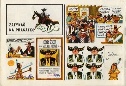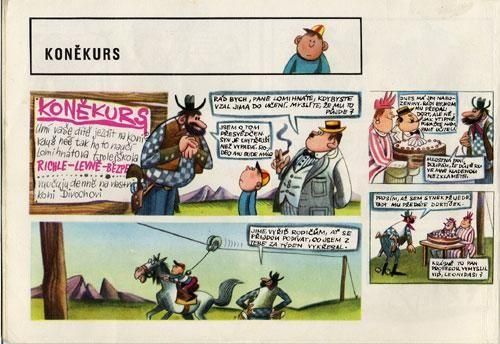 子供向けの雑誌「オフニーチェク」で連載されていた作品をまとめて一冊の絵本にした作品です。イラストとお話を担当するのはカレル・フランタ。以前に紹介した「Clovece, nemrac se!」のようなタッチでマンガのようなコマ割で描かれた楽しい絵本です。チェコ語がわからなくても絵を追っていくとなんとなく内容がわかります。