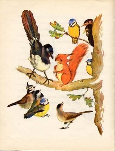以前に87年版を紹介しましたが、かわいらしいリスの絵が表紙を飾るこちらの絵本は、タイトル&表紙のイラスト通り、リスの冒険を描いた絵本。イラストを担当するのは切手のアートワークでも有名なカレル・スヴォリンスキーです。柔らかなタッチで動物たちが美しく描かれています。全70ページ、ほぼ全てのページにイラスト有。ビニールコーティングされていますが、背表紙の部分に少し浮きがあります。本体は状態良好です。