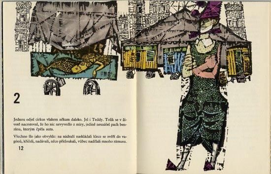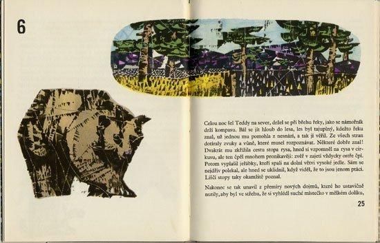 不思議なタッチのイラストで人気の高いカレル・タイスィクによるクマのお話。62年の作品でザラつきのある紙に発色豊かに印刷が施されています。イラストの雰囲気と相まって非常にすばらしい一冊に仕上がっています。
