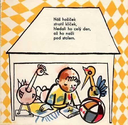 クヴィエタ・パツォウスカーの初期作品。クヴィエタ・グリガロヴァー名義の貴重な作品です。後期から現在の作風からは想像の付かない牧歌的なイラストですが、そこかしこに片鱗が見られます。全50ページ、全ての見開きにイラストがあります。少し汚れのあるページもあるのですが比較的状態良好です。