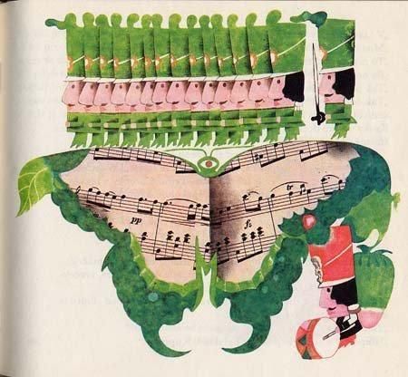チェコでは高名なピアニストであり、作曲家でもあるイルヤ・フルニークがテキストを担当している、音楽をモチーフにした絵本。イラストは一目見ただけでわかるクヴィエタ・パツォウスカー。1973年が初版ですが、装丁をほとんど変えることなく再販を重ねています。こちらは89年版。赤と緑がとくに強調された絵本で、コラージュなども少し見られます。全93ページで、ページ一面を使ったイラストは12点。しかしカット自体は多く、ほとんどの見開きにイラストがあります。中期パツォウスカーの魅力が詰まった一冊です。表紙の角に擦れなど経年の傷みは多少ありますが状態良好です。