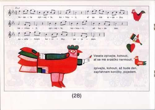 クヴィエタ・パツォウスカーがイラストを担当した楽譜集。見開きの左側に楽譜。右側にその音楽に因んだお話が、コマ割された、マンガのような構成で描かれています。赤い線を使って描かれたイラストに、補色の緑や、その他様々な鮮やかな色が載り、美しい仕上がりとなっています。パツォウスカーの作品の中でも珍しい一冊。コレクターなら抑えておきたい作品です。サイズが大きいところも魅力ですね。全55ページ、ソフトカバー。全ての見開きにイラストがあります経年の傷みは多少あるものの比較的状態良好です。