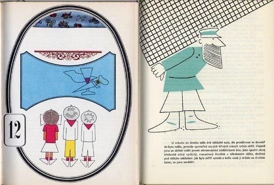 クヴィエタ・パツォウスカーがイラストを担当する絵本。といってもこのイラストタッチだと、にわかには信じがたいかもしれません。68年の初版なのでミケシュの絵本を描いていた頃と同時期なのですが、当時はまだこのようなイラストタッチの仕事もしていたんですね。余計なものを削ぎ落とし、シンプルな線と彩色で簡潔に表現されていますが、構図の素晴らしさなどからパツォウスカー+グリガルの仕事の凄さが垣間見えます。コラージュとカラーイラストを組み合わせたアートワークも数点収録されています。発行部数も7500と少なく希少な作品ですので、パツォウスカー好きの方にぜひ!全178ページにイラストは50点以上。ページ一面を使ったイラストは6点です(うち、カラーが4点)。経年の傷みは多少あるものの比較的状態良好です。