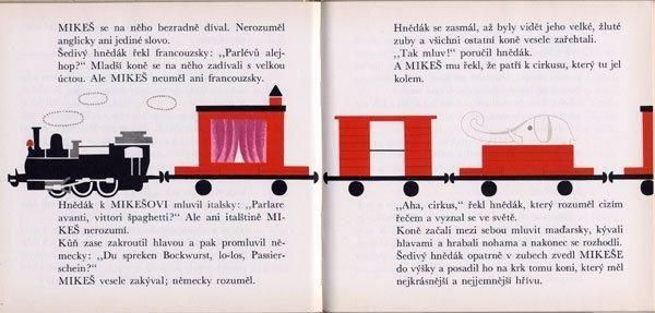 黒ねこミケシュのぼうけん。こちらは70年版です。といってもデザインと構成は初版と同じです。80年代のクヴィエタ・パツォウスカーとは違った、ベタッとした切り絵のようなイラストがかわいいですね。このころはまだ目もギョロッとしていません。表紙のオッサンが少し片鱗を見せてはいますが・・・。全70ページ、イラストは大小あわせて20点ほど。この絵本はビニールコーティングの精度が低いので、傷みのあるものが多いのですが、こちらは経年の傷みは多少ありますが比較的状態良好です。