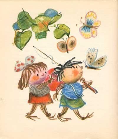 スロヴァキアのKlub Mladych Citatelovから発行された絵本です。表紙にも描かれている男の子と女の子のお話。9編の短いお話が収録されています。子どもたちだけではなく、リスや猫などの動物たちも、色鉛筆による優しいタッチのイラストでとてもかわいらしく描かれています。
