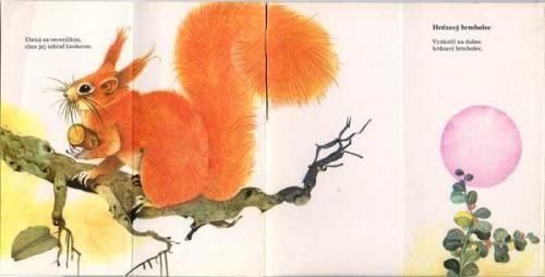 ルヂェク・マニャーセクによる柔らかなタッチ、鮮やかな色彩で動物たちが描かれています。チェコでも非常に人気の高い、折りたたみ式仕掛け絵本です。各ページに綴じ込みがあり、2段階に折りたたまれていて、捲るたびに新しい世界が広がります。詳しくは画像をご覧ください。全8ページ、全てのページにイラストと折り返しがあります。