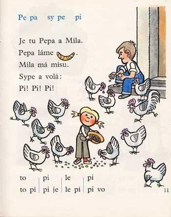 小学2年生のための読み書き勉強絵本です。イラストを担当するのはルヂェク・ヴィムル。「Brousek pro tvuj jazycek」というABC絵本が特に知られています。太い線でしっかりとした色使いのイラストが特徴的で、僕もお気に入りのイラストレータです。