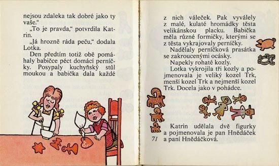 ルヂェク・ヴィムルがイラストを担当した絵本。スウェーデンで発行された絵本のチェコ語翻訳版です。表紙に描かれている二人の女の子が主人公なのですが、全然かわいくありません。かわいくなさ過ぎて悲しくなるほどです。この目で確かめたい!という方にぜひ。ヴィムルのイラスト自体はかわいいんですけどね。全112ページに50点以上のカラーイラスト。糸綴じではなく糊綴じなので割れのある箇所がありますが、ページの外れなどはありません。経年の傷みはあるものの比較的状態良好です。