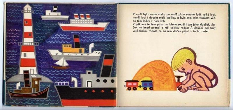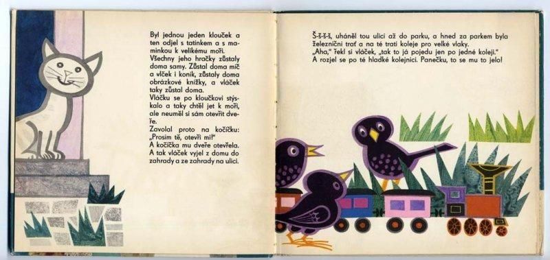 ルヂェク・ヴィムルの可愛らしいイラストが堪能できる絵本です。ザラつきのある紙に美しい発色の印刷が施されています。1963年の初版です。全42ページ、すべての見開きにカラーイラスト。経年の傷みはあるものの比較的状態良好です。