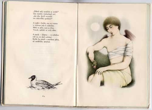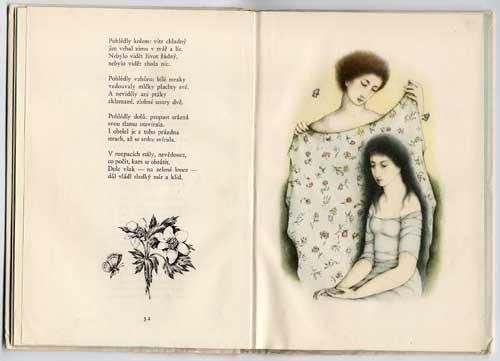 カミル・ベドナーシュのお話にルドミラ・イジンツォバーがイラストを担当した一冊です。全98ページに40点以上のイラスト。ページ一面を使ったカラーイラストは8点。いずれも陰影を上手く使った繊細なイラストで50年代特有のザラつきのある紙に雰囲気良く描かれています。