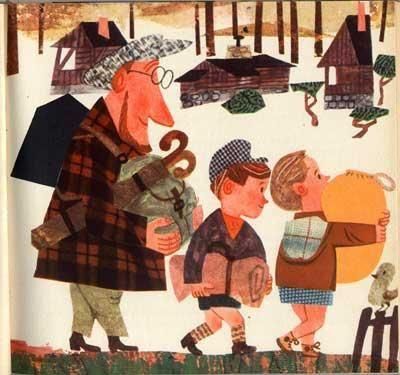 「Bachorky Admirala Machorky」と同じ年、そして同じコンビで出版された絵本。マルツェル・ステツケルがイラストを担当しています。こちらの絵本はグレーを使った味のあるモノクロのイラストが中心ですが、カラーイラストにはやはりコラージュが多用されていて、遊び心満載の一冊です。見返しのイラストもかわいいですよ。