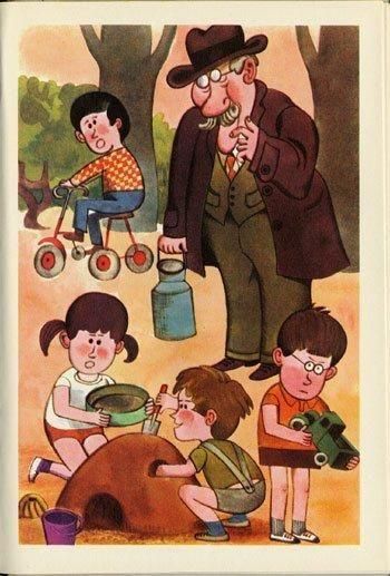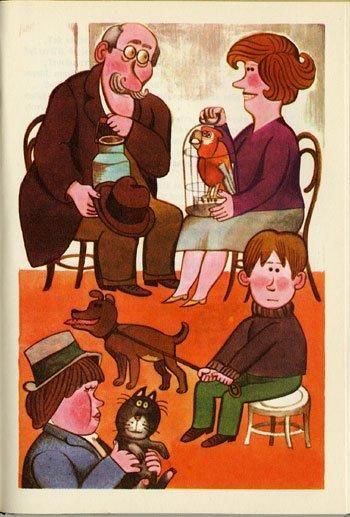 「ふしぎなお客」というタイトルの絵本。どいつが不思議なのかというと、まぁ言うまでもありませんが表紙左上に登場しているクリオネのオバケみたいなやつです。雨の日に突然現れ、ジイさんと仲良くしています。この年代のマルツェル・ステツケルのイラストは個人的にも大好きなのですが、不思議なキャラクターの存在感も相まって、かなり面白い一冊に仕上がっています。見返しには中で使用されている挿絵が拡大されてあしらわれ、表紙カバーをはずした布張りにはこのオバケが箔押しされています。扉ページでも存在感たっぷり。このグラフィックセンスには脱帽です。全86ページにモノクロイラストが20点。ページ一面を使ったカラーイラストが4点。表紙カバーに1cmの破れが4ヵ所。下部に5cmほどに渡りテープの剥離跡があります。内部は経年の傷みはありますが比較的状態良好。