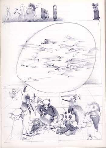 大きなサイズの絵本で、モノクロの緻密な線で描かれた独特のイラストが満載で、作品の不思議な世界がさらに広がりを見せています。83年版に比べ紙質が薄くなるため、全体的な厚みも抑え目になっています。縦横のサイズは同じです。