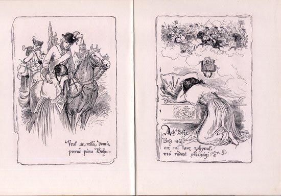 1951年発行のミコラーシュ・アレシュの絵本。というか、彼の残した作品やアートワークを収録し、バイオグラフィなども紹介した作品。アレシュといえば、ヨゼフ・ラダ以前のチェコ絵本史における重要人物です。絵画などの評価が高いのはもちろんの事ながら、子供向けのカードゲームなどのイラストも手がけていたようです。