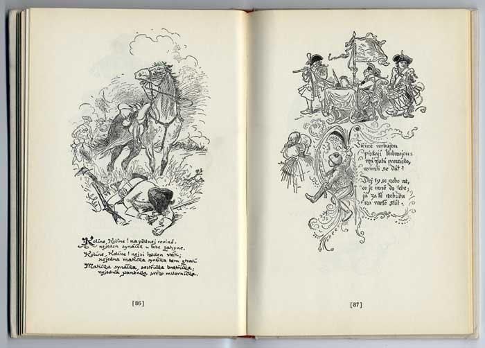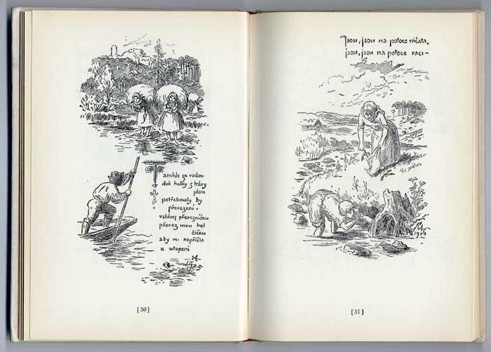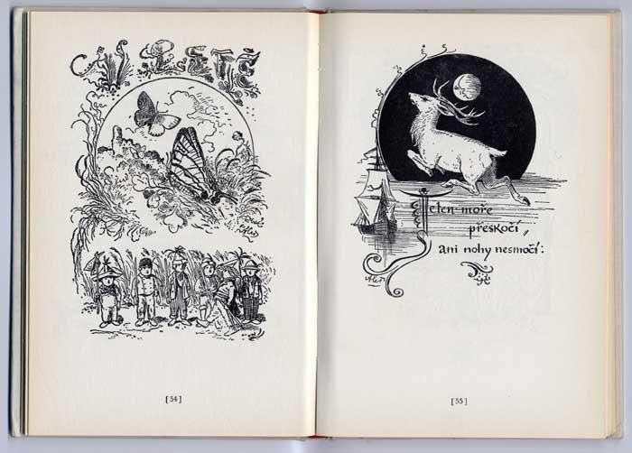1939年発行のミコラーシュ・アレシュの童話集の抜粋、再編集版です。コンパクトに纏めているとはいえ一枚もののイラストが多数載されていて、ミコラーシュ・アレシュの画集といった趣の一冊です。