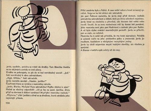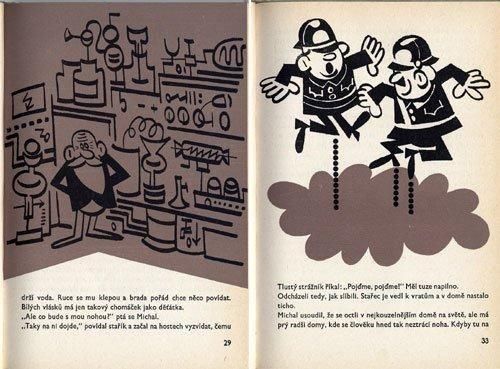 オタ・シャフラーネクのお話にミロシュ・ノルがイラストを担当した絵本です。全168ページ、モノクロに薄い赤茶色の差込が入った味のあるイラストが40点以上収録されています。太い鋭角の線で平面的にイラストが描かれているのですが、なぜか立体感と迫力を持って見えるから不思議です。自らも装丁デザインを手がけるなどグラフィックアーティストの仕事もこなすため、単純に描かれているように見えて、実は計算された美しいバランスで構成されています。侮れませんよ〜。経年によるヤケなどはありますが比較的状態良好です。