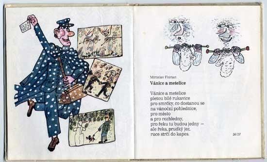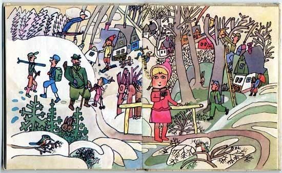 様々なイラストレーターに影響を与えたミロスラフ・ヤーグルがイラストを担当する絵本。チェコの冬の風景がコミカルなイラストで描かれています。全77ページ、すべての見開きにイラストがあります。ページの見開きを大きく使ったイラストも4点。