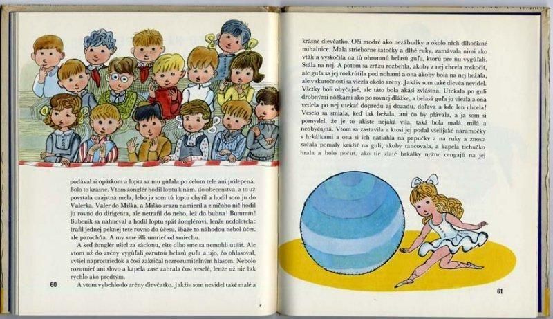 1961年にモスクワで発行された絵本のスロヴァキア語版。イラストをミロスラフ・ヤーグルが担当しています。発行部数は6000とかなり少なめ。ヤーグルのコミカルで可愛らしいイラストが堪能できる一冊です。全70ページにイラストが21点。擦れなどは多少あるものの状態良好です。