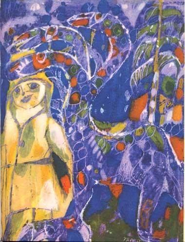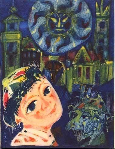 暗い色を効果的に使うイラストレーター、ミロスラフ・トロウプ。ドローイングと版画を巧みに組み合わせたアートワークで美しく彩られています。ページ一面を使ったイラストでは深い青を基調としたものが多いですが、版画のカットはその限りではありません。見返しのイラストも面白いですよ。