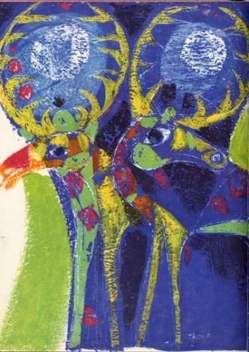 幻想的で芸術性の高いイラストを描く、ミロスラフ・トロウプがイラストを手がけた絵本のフィンランド翻訳版。トロウプといえば、黒を貴重としたイラストが多く描かれている絵本が多いのですが、この絵本はとてもカラフルな色彩で描かれています。チェコ国内では1967年にARTIAから出版されていたようです。