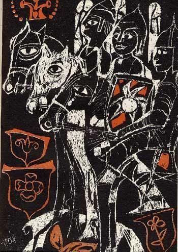 ヨゼフ・セケラのお話にミロスラフ・トゥロウプがイラストを担当した絵本です。トゥロウプと言えば黒を効果的に使った鮮やかなイラストが特徴的ですが、この絵本では色鮮やかさは身を潜め、オレンジ、黒の2色で構成された大胆なアートワークのみとなります。全78ページ。ページ一面を使ってのイラストが8点。表紙カバーに5mm程の破れが2ヶ所ありますがそれ以外は状態良好。