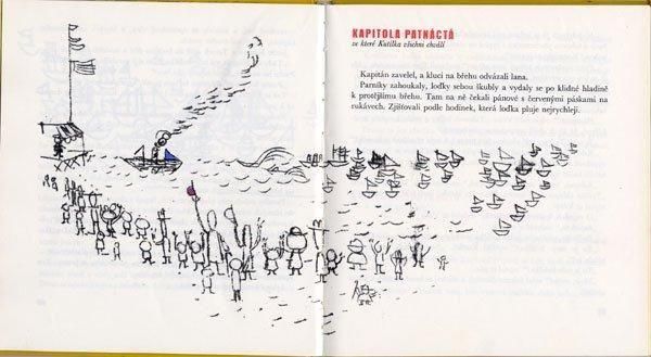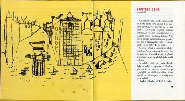 1964年にロシアで発行された絵本のチェコ語翻訳版。2匹のクマでおなじみ「ぼくらと遊ぼう」の美術監督を務めたミロスラフ・シュチェパーネクがイラストを担当した絵本です。自由に描かれたイラストたちは、どれもデッサンの狂った奇妙な物ばかりですが、不思議と躍動感を感じさせます。全160ページに40点以上のイラスト。ページ一面、両面に渡る大きなイラストが11点。