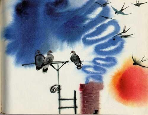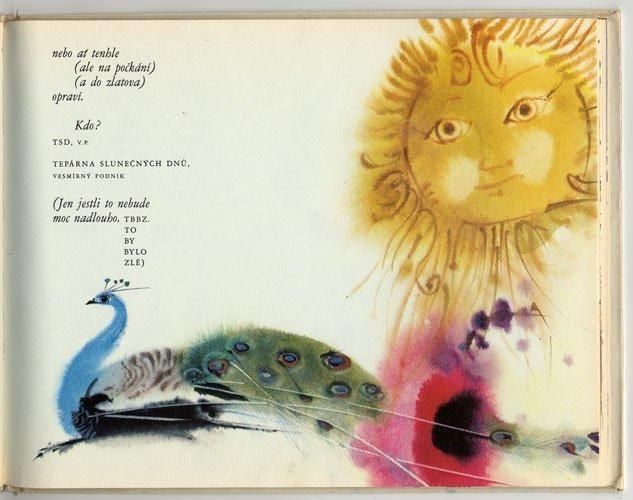 ミレナ・ルケショヴァーの詩にミルコ・ハナークがイラストを担当した絵本です。70年代の作品ということもあり印刷の美しさには目を見張るものがあります。お得意の動物と子供だけではなく、コーヒーカップや時計、おじいさんなどのイラストも幻想的な美しいタッチで描かれています。詩は全部で46篇収録。その全てにミルコ・ハナークのイラストが彩りを添えています。全60ページ、ほぼ全てのページにイラストがあると言う豪華な一冊です。2ページほどテキスト部分に書き込みがあります。そのほか経年の傷みはあるものの比較的状態良好です。