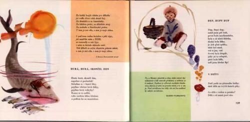 サイフェルト、フルビーン、ネズヴァル、クンデラ、ハラスなどなど。チェコを代表する詩人、作家40名によるオムニバスの絵本です。あまりにも豪華すぎるメンツにイラストを添えるのはミルコ・ハナーク。240ページを超えるボリュームに120点程のイラストを収録。本の最後には作家の顔写真付きのプロフィールが羅列されていて、資料としても貴重な作品です。作家、イラストレーター両方のアプローチからも押さえておきたい一冊です。背表紙下部に少し傷み。その他経年の傷み、汚れなどはあるもの比較的良好です。
