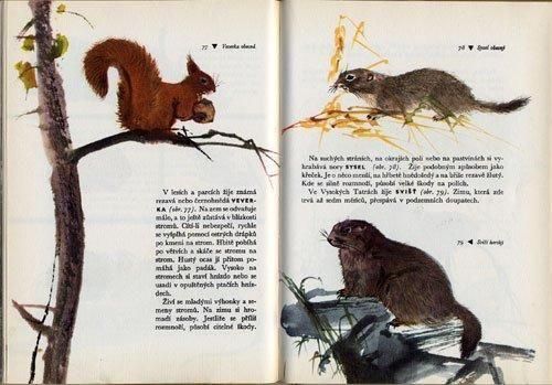 チェコ絵本で動物のイラスト、と言えば真っ先に連想するのがミルコ・ハナークという人が多いと思います。こちらはそのミルコ・ハナークがイラストを担当する動物学の教科書です。内容はまるで動物図鑑かのようなイラストの多さに目を奪われます。哺乳類、鳥類、魚類、爬虫類はもちろん、恐竜までもが描かれています。動物学と言うことで、骨格などを図解したイラストも掲載されています。教科書を紹介するたびに言ってますが、本当にこんなテキストで勉強できるチェコの子供たちがうらやましいですね。全194ページ、ほとんどのページにイラスト。残念ながら1ページ一部を切り取られた跡があります。詳細は画像をご参照ください。その他は経年の傷みはありますが比較的状態良好です。