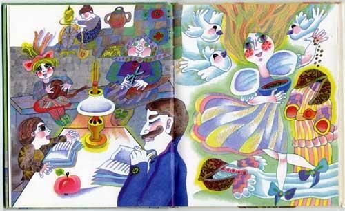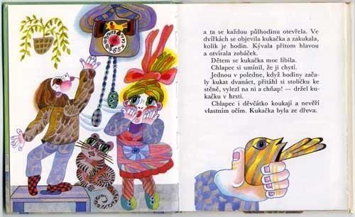 スロヴァキアで発行された絵本のチェコ語翻訳版。イラストを担当するのはオルガ・チェホヴァーです。鮮やかな色彩がとても楽しい絵本で、全64ページ33点のイラストが収録されています。また、その内見開き両面を大きく使ったものが11点。ページ一面を使ったものが6点と豪華な仕上がり。チェホヴァーのファンなら抑えておきたい一冊です。状態は良好ですがトビラにわりと大きめにメッセージが書かれています。