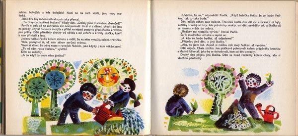 1957年に旧ソ連で発行された絵本のチェコ語翻訳版。イラストをオルガ・チェホヴァーが担当しています。64年と結構初期の作品で、ステンドガラスのような鮮やかで色彩豊かなイラストが魅力的です。発色もとても美しくチェホヴァーのファンでなくても手にとって見ていただきたい1冊です。