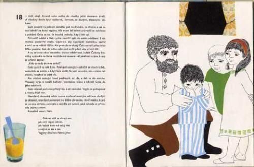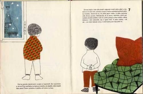 さまざまな絵本のアートディレクターなどを努めるオルガ・パヴァロヴァーによるイラストの絵本です。以前1984年版を紹介しましたがこちらは1962年版。同じ絵本、同じイラストレータでも随分と違います。線画によるイラストがほとんどで、衣服などに効果的にコラージュが使われています。