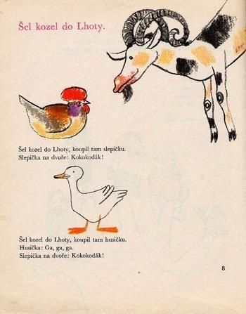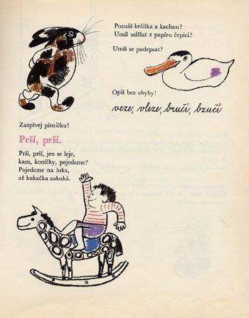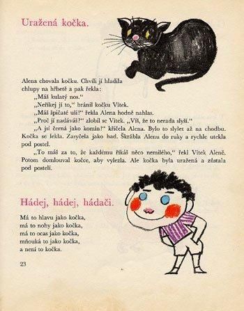 ヤネチェクがイラストを担当する子供のための短編集です。全60ページ、ほぼすべてのページにイラストがあります。ヤネチェク独特のボヤっとした感じでもなく、細いモノクロの線画でもなく「SLABIKAR ABC」と同じような色鉛筆で描かれたようなイラストタッチです。経年の傷みや汚れは多少あるものの比較的状態良好です。